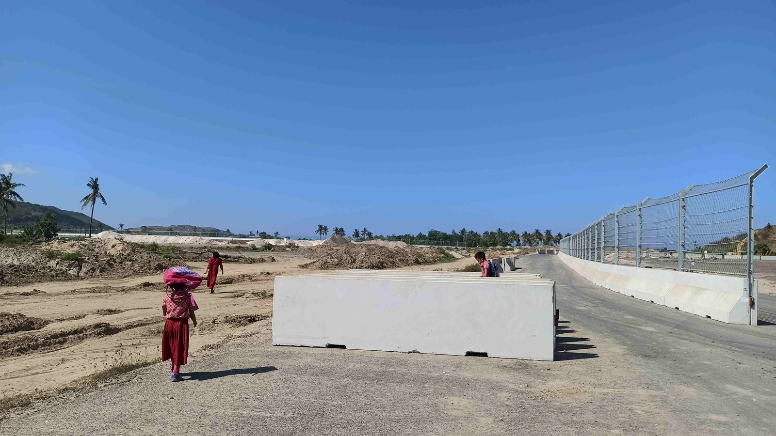 Pemasagan tembok oileh investor di lahan yang dikuasai warga. Tembok ini bertahan hingga hari ini
