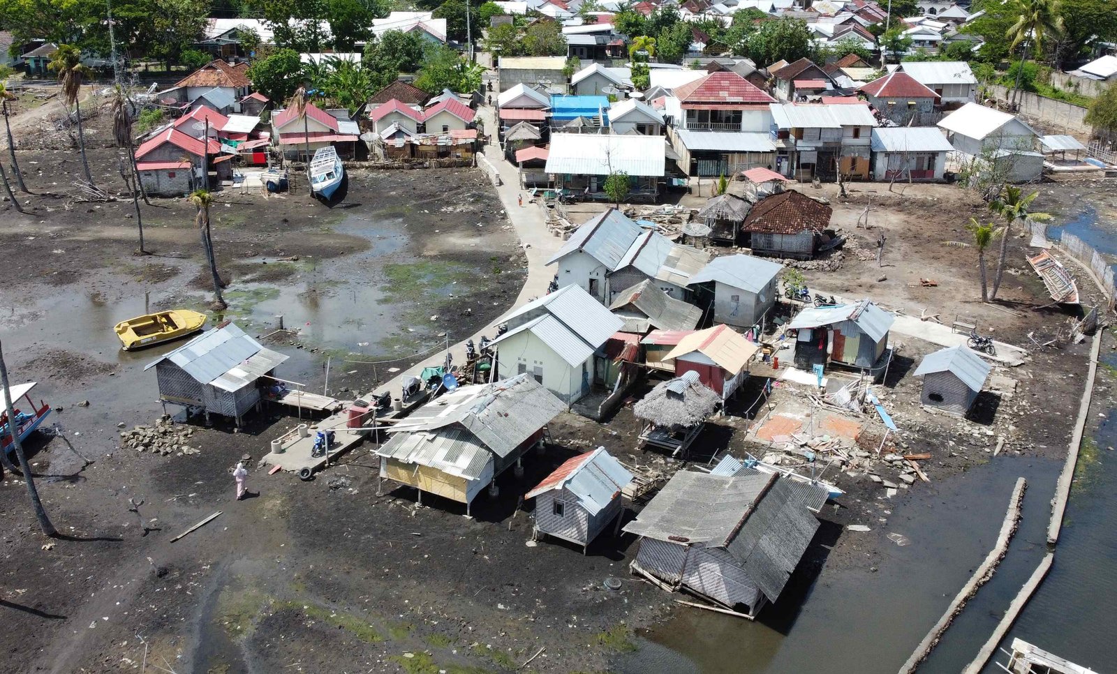 Namun, tanggul yang dibangun dengan dana ratusan juta rupiah tersebut tak bertahan lama. Entah karena struktur bangunannya yang tak sesuai dengan spesifikasi atau karena air laut yang semakin meninggi, pada tahun 2016 tanggul tersebut runtuh. Hingga hari ini, delapan puluh persen dari area perkampungan tergenang air luat.