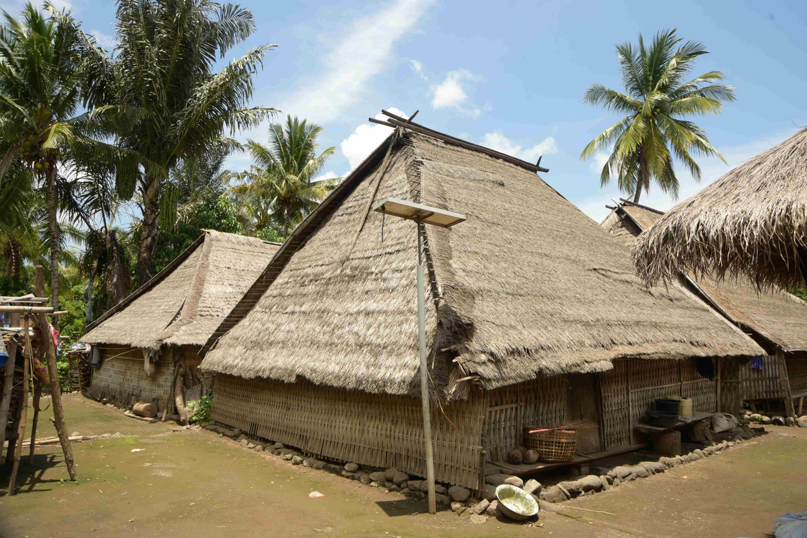 Cahaya senja menyapa, menyeruak di balik rimbunnya pepohonan dan rapatnya bangunan rumah di Dusun Kecinan, Desa Malaka, Kecamatan Pemenang, Kabupaten Lombok Utara. Dari ratusan rumah berdinding kalsibot dan beratapkan spandek khas rumah bantuan gempa Lombok, berdiri kokoh beberapa rumah panggung setinggi enam sampai tujuh meter.