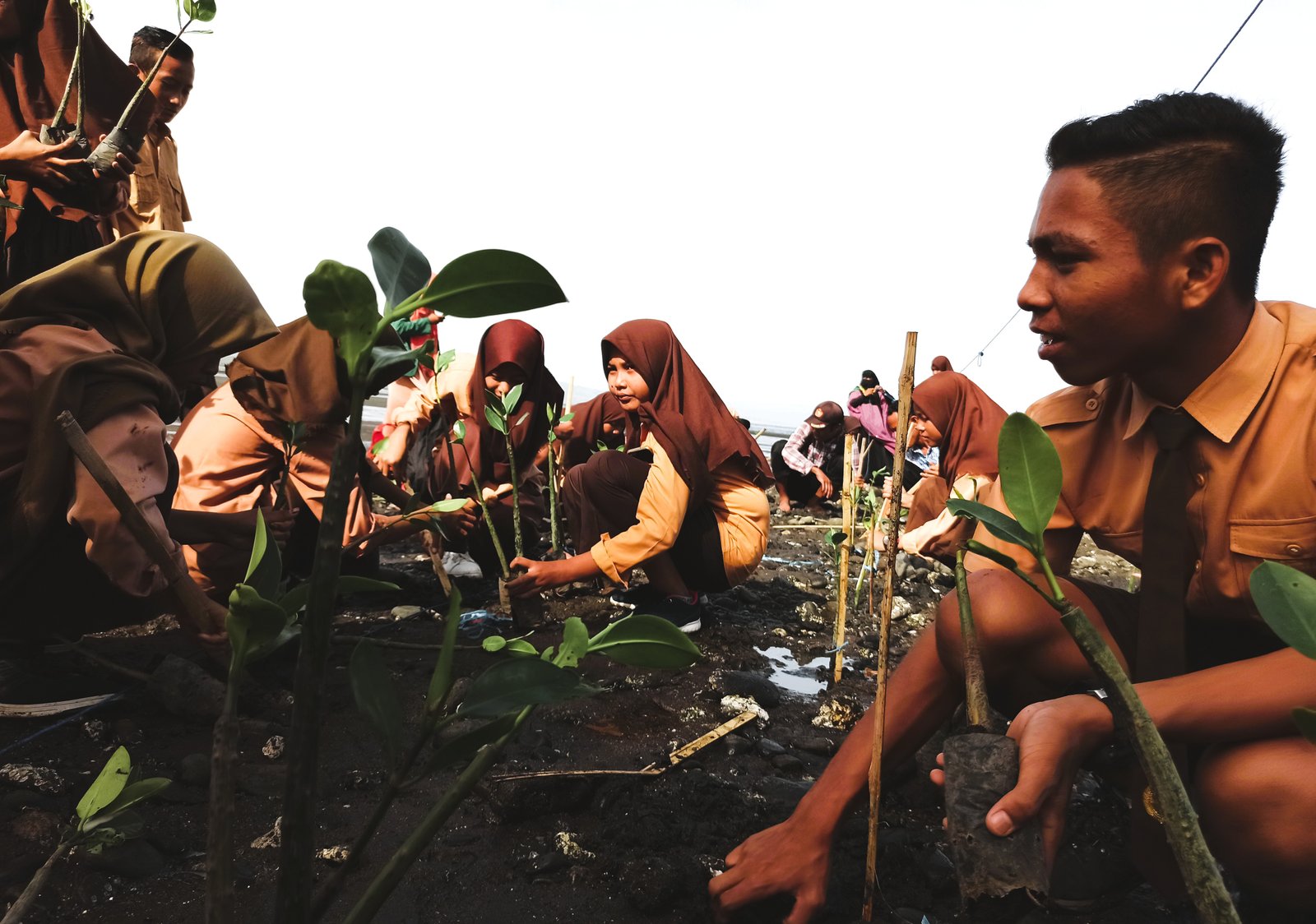 Keesokan paginya, beberapa dari anak-anak itu benar-benar datang. Termasuk gadis kecil penjual makanan itu. Mereka membantu mengangkat bibit mangrove yang akan ditanam di pesisir.
